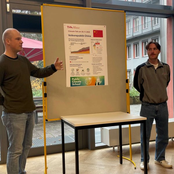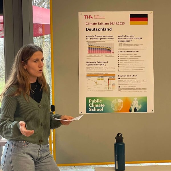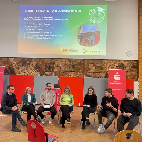 Die Veranstaltungsreihe „Climate Talks 2025“ in Augsburg am 26.11.2025 stellte die internationale Klimapolitik in den Vordergrund mit einem speziellen Fokus auf die Ergebnisse der gerade zu Ende gegangenen Klimakonferenz COP 30 in Belém, Brasilien. Zum dritten Mal in Folge organisierte die Technische Hochschule Augsburg mit dem Team von Prof. Wolfgang Rommel und Prof. Stefan Osterland gemeinsam mit Manos Verdes Deutschland e.V. eine offene Veranstaltung für alle interessierte Teilnehmer unter dem Namen „Climate Talk 2025 – die Ergebnisse der COP30“. Gemeinsam mit den Studenten des Masterstudiengangs Umwelt- und Verfahrenstechnik wurde ein interaktives Programm vorbereitet, das den Teilnehmern ein aktives Mitwirken an der Veranstaltung ermöglichte.
