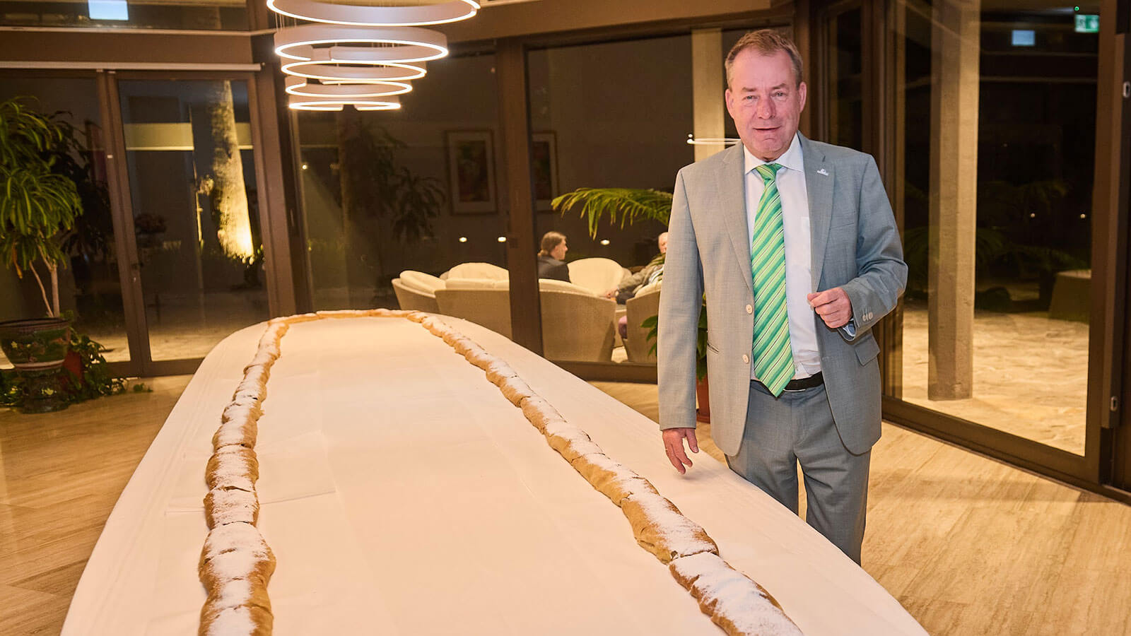La celebración incluyó un panel de intercambio sobre los desafíos actuales de la gestión ambiental, un espacio de exposición de proyectos, la firma simbólica del compromiso ambiental de la Fundación Manos Verdes en la Cueva de Manos, una instalación creada por el artista argentino Joaquín Fargas y un Apfelstrudel de 15 metros preparado especialmente para la ocasión.